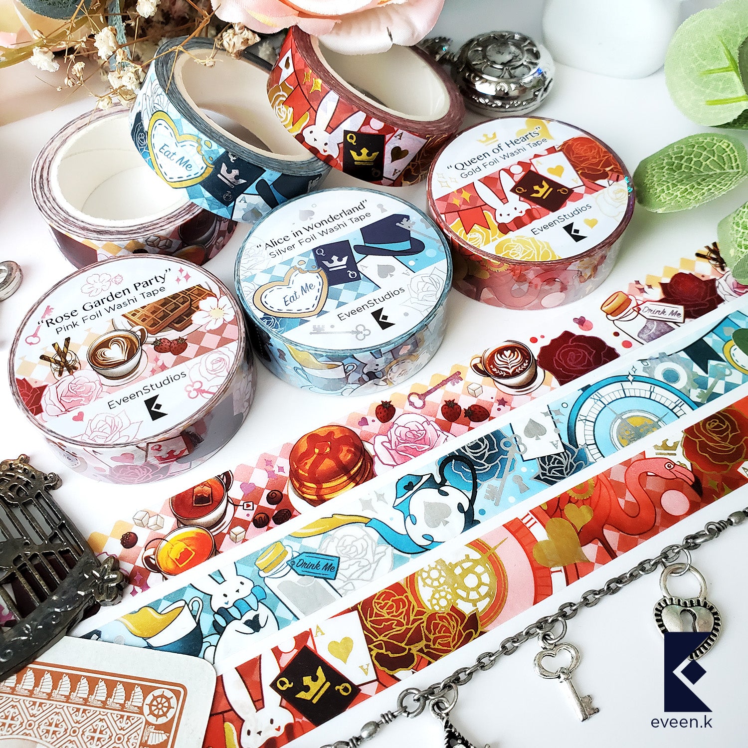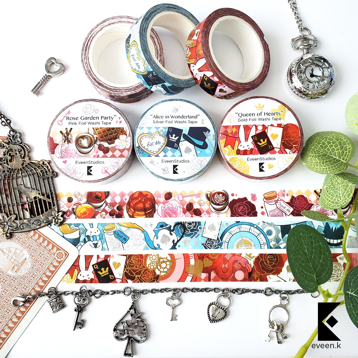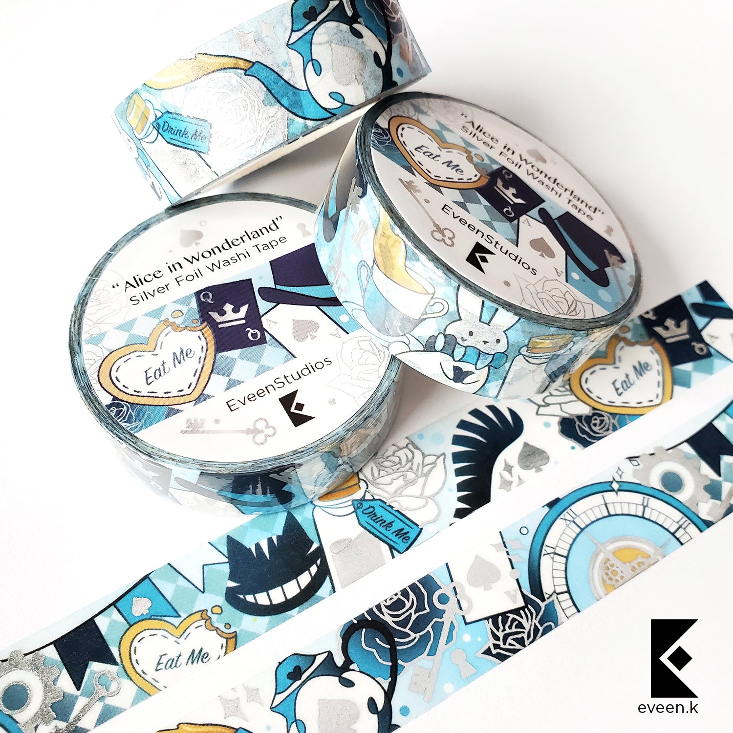 Silver Foil Washi Tape. Original design inspired by Alice's Adventure in Wonderland.