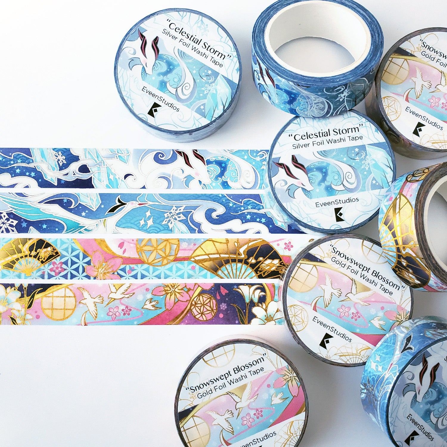 Gold and Silver Foil Washi Tape. Original design inspired by the beloved characters Ayaka Kamisato and Ganyu from Genshin Impact!